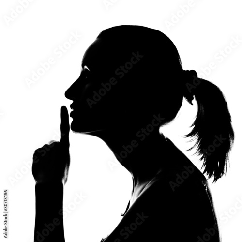 Silhouette of woman with hush sign