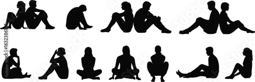 Silhouette, people, sitting, meditation, relaxation, contemplation, diverse, group, yoga, mindfulness, peaceful, calm, serene, posture, wellness, mental, health, tranquil, harmony, balance