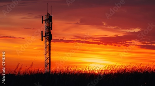 Silhouette phone antenna.Sunset background