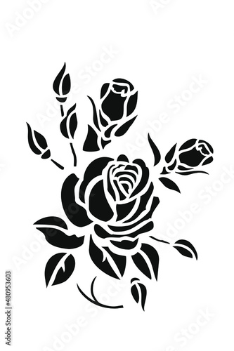Silhouette roses and leaves. Flowers tattoo vector illustration.