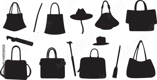 Silhouette Vector Art: Handbags, Hats, Walking Sticks, Accessories