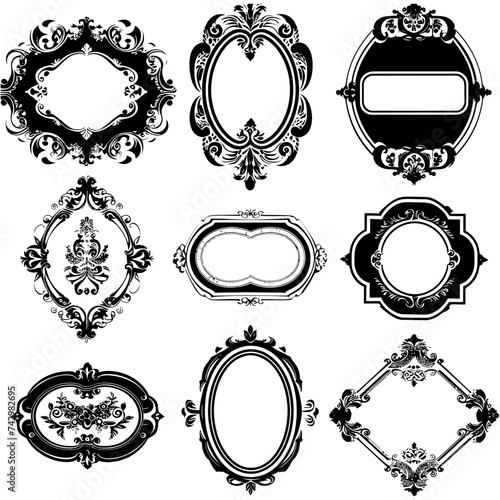 Silhouette vintage sticker label Vintage frames element for wedding invitation black color only