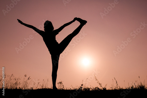 Silhouette woman with standing position yoga.