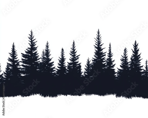 Silhouetted illustration of a forest line with evergreen trees against a white backdrop