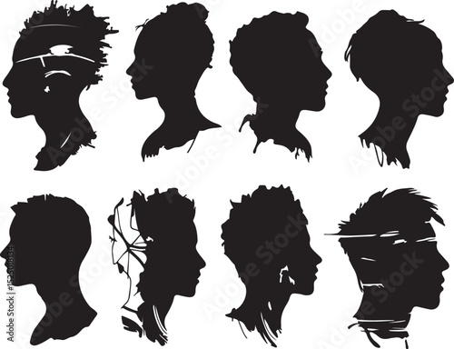 Silhouettes of Diverse People: Vector Art Heads Profile Views, Black and White Graphic Illustration, Modern Abstract Portraits for Design Projects