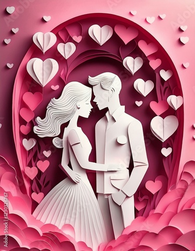 silhouettes of lover in eternal light with hearts