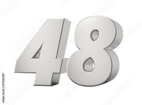 Silver 3d numbers 48 Forty eight. Isolated white background 3d illustration