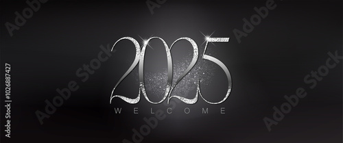 Silver glittering numbers display Happy New Year 2025 symbolizing celebration and joy for the upcoming year