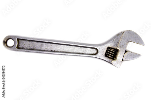 Silver Metal Monkey Wrench Isolated On White Background.