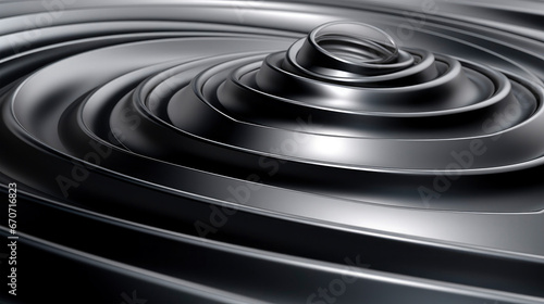 Silver metallic round lines, rings, circles, spiral or swirls pattern in 3d with shining effects background, texture