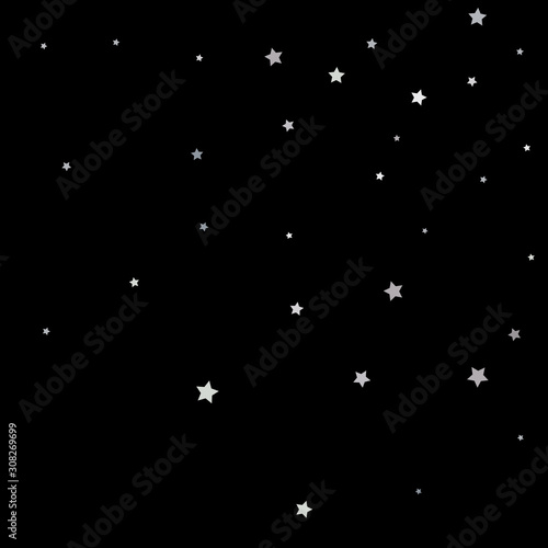 Silver sparkle star on black background. Starry confetti