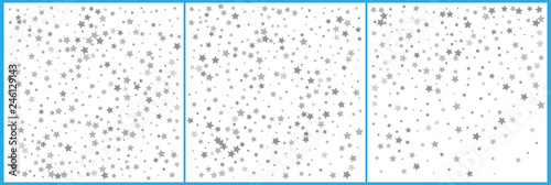Silver star confetti celebrations. Simple festive modern design. Holiday vector. Set 3 in 1
