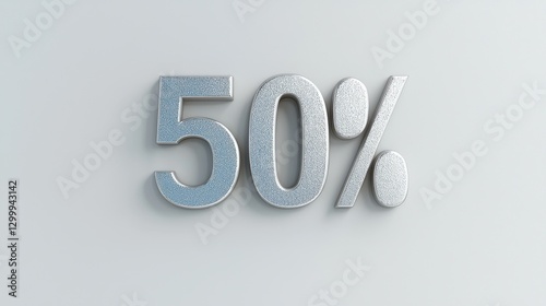 Silver Textured Percentage Sign on Light Gray Background