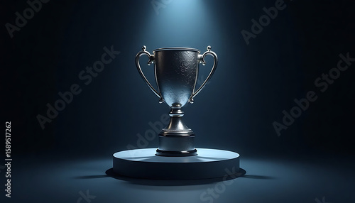 silver trophy cup | Elegant Silver Trophy Highlighted on a Dark Background in Dramatic Lighting