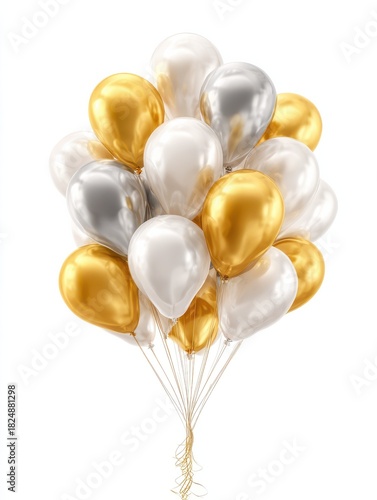 silver white gold balloons banner isolated white background festive party decoration for new year birthday anniversary celebrate event happy holiday gift fun helium air balloons with gold 2026