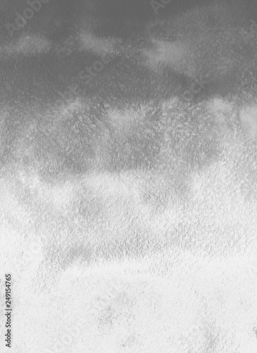 Silver with gray ink and watercolor textures on white paper background. Paint leaks and ombre effects. Hand painted abstract image.