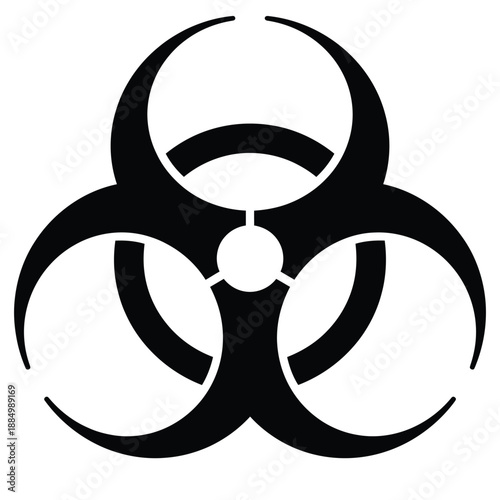 Simple black and white biohazard symbol prominently displayed on white background