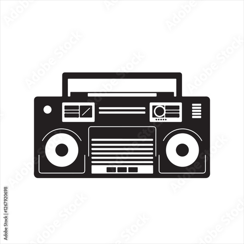 Simple Black and White Boombox Logo – Flat Design Vector