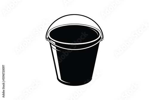 Simple Black and White Bucket Illustration with Handle Perfect for Cleaning and Gardening Projects Silhouette black white illustration bucket presented clean