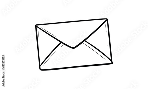 Simple black and white envelope drawing with clean lines. Vector retro hand drawn illustration