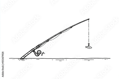 Simple black and white fishing rod illustration.