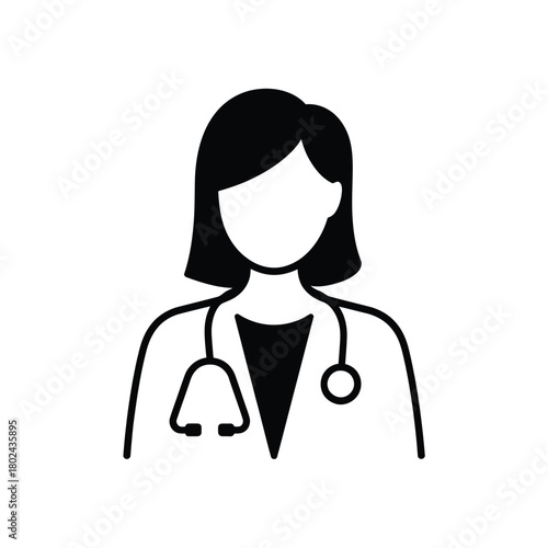 Simple black and white icon of a female doctor