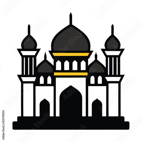 Simple black and white silhouette of a mosque