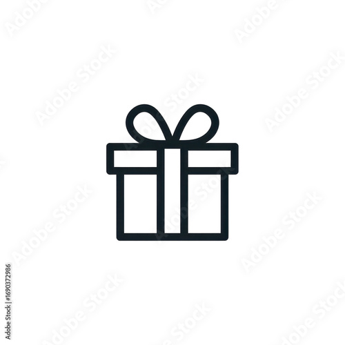 Simple Black Gift Box Icon with Bow for Holiday and Celebration Themes