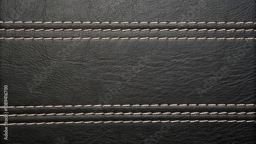 Simple black leather background with thin horizontal stitches, minimalist leather, black leather, thin stitches
