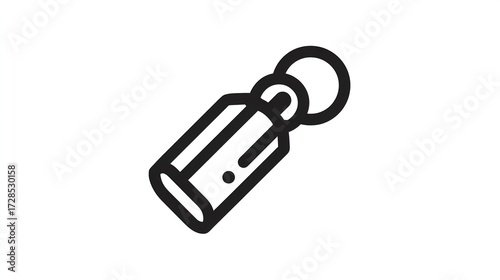 Simple black outline illustration of a key fob with a rectangular tag