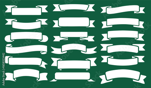 Simple Black Ribbon Banner and Flag Vector Design Elements Set Vintage ribbon and banner set with green decorative labels and frames in vector collection
