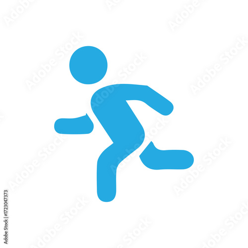 Simple blue icon of a running person in a dynamic pose. Stylized vector silhouette representing speed, fitness, exercise, and an active lifestyle, isolated on a white background