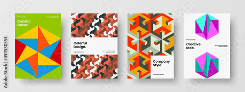 Simple booklet A4 design vector template composition. Minimalistic mosaic tiles leaflet illustration set.