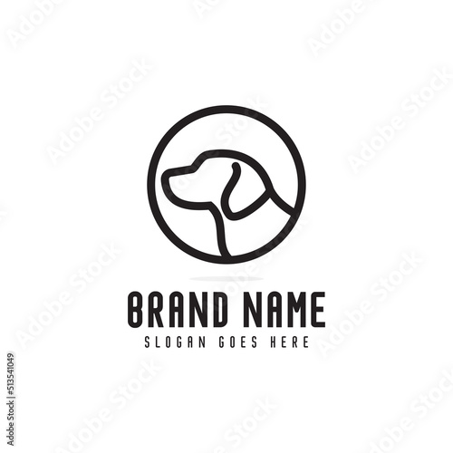 simple circle and dog logo design in linear style, pet shop logo concept, pet grooming vector template icon