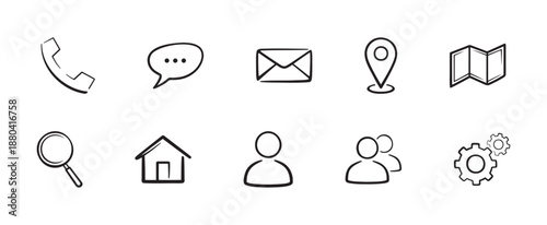 simple contact line icons set with phone chat mail location user home settings