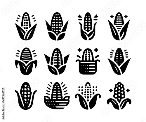 Simple Corn Icons Black and White Vector