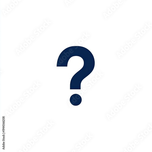 Simple, dark blue question mark centered on a stark white background