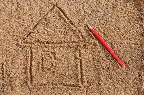 simple drawing of a house on the sand
