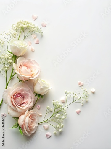 Simple elegant love concept with soft pastel colors and delicate flowers on a clean white background