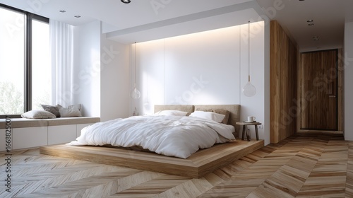 simple exclusive white bedroom with wooden parquet no logos no brands ar 169