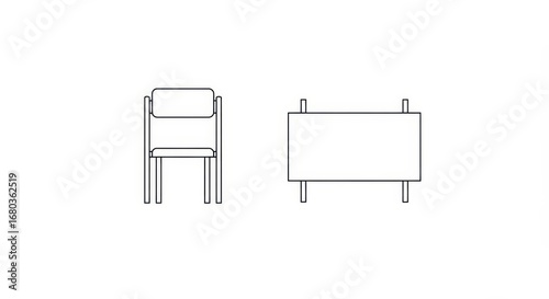 Simple line drawing of a chair and a rectangular table, perfect for furniture design or interior concept illustrations.