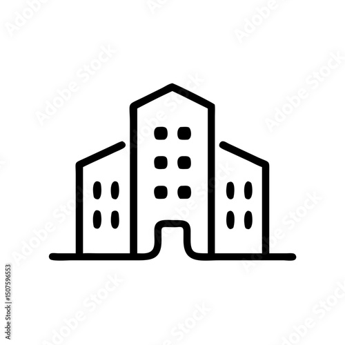 Simple line drawing of a modern building with multiple windows