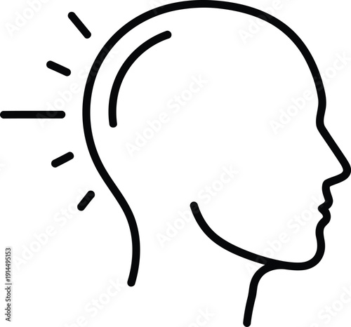 Simple line drawing of a person's head with a burst of energy or light behind it