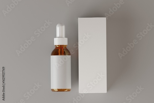 Simple Mockup Amber Glass Dropper Bottle with Blank Box Packaging Still Life