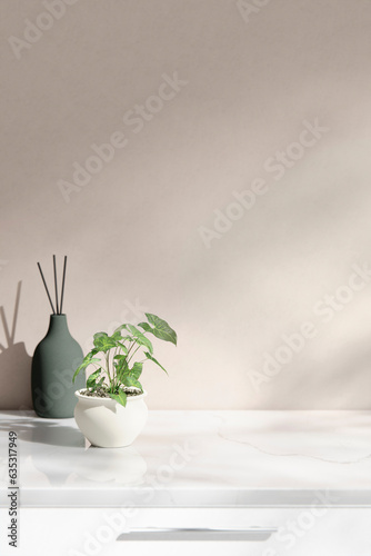 Simple monotone background with vases, tree
