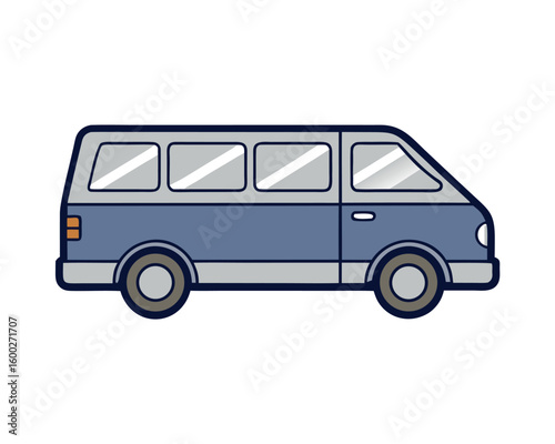 Simple Navy Blue Minivan Line Art Vector Illustration