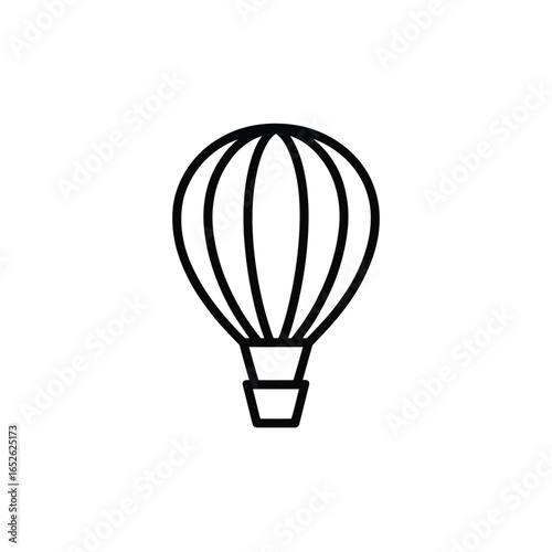 Simple Outline Icon of a Hot Air Balloon with Basket on White Background airship aviation