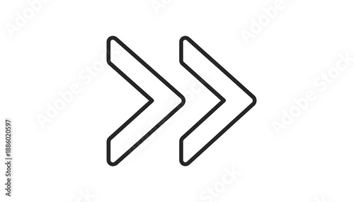 Simple outlined double right arrow icon, pointing toward direction on white background