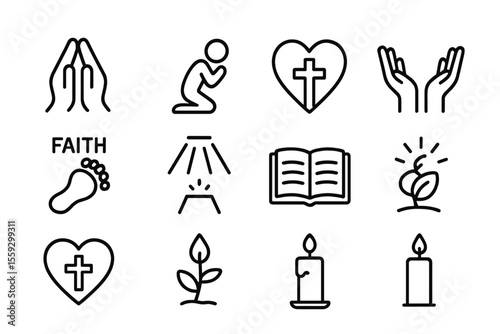 Simple religious icons: symbols of faith, prayer, and spirituality