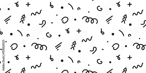 Simple Seamless Memphis Pattern, Black Confetti, Monochrome Minimalistic Retro Background, Simple Flat Artwork